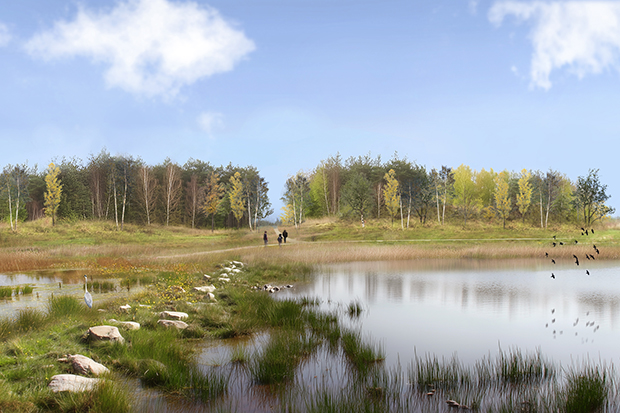 Moseholmen ved søen. Illustration: Schønherr A/S.
